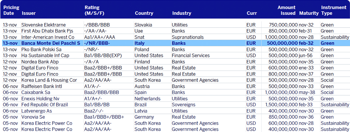 Selected ESG-Labeled Bond Issuance | Recent Deals